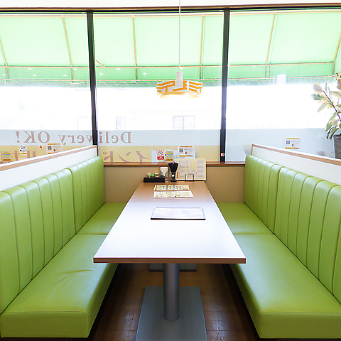 ビルの2階にある当店は大きなガラスから外の景色が良く見え、とても開放的な雰囲気です!白と緑を基調とした明るくアットホームな空間の店内の居心地の良さは抜群です!ご家族様やご友人、デートやお仕事の休憩時間の昼食など、どなた様でもお気軽にご来店いただける雰囲気です♪