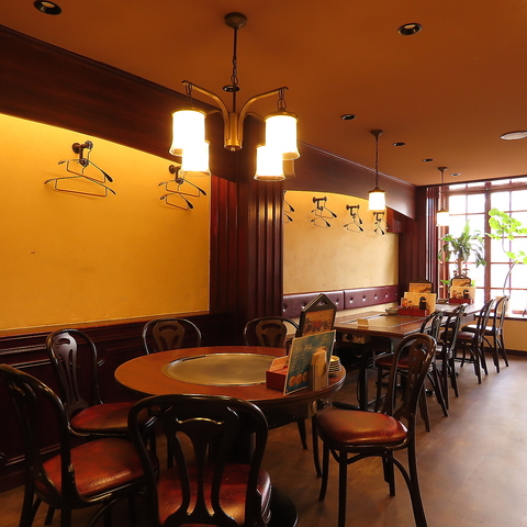 全員の顔が見渡せる人気の丸テーブル席!中央の鉄板を囲み、熱々のお好み焼きをシェアしながら会話も弾みます。ご家族やご友人同士のグループ利用にぜひご利用ください。