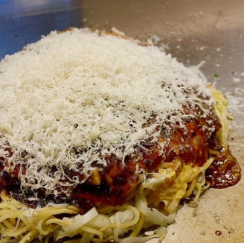 とけたチーズとパルミジャーノチーズのチーズたっぷりお好み焼き!チーズ好きには必見のお好み焼きです!