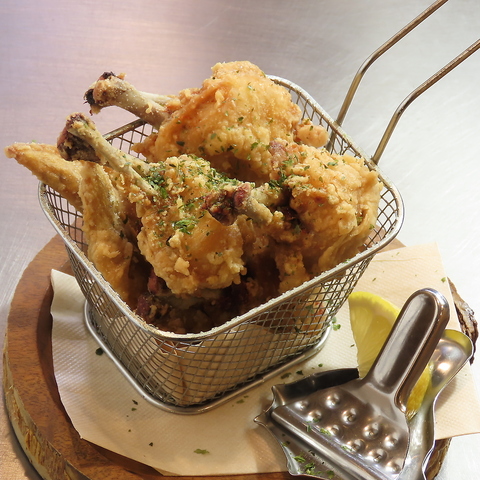 持ちやすくて食べやすい骨付き唐揚げ!パセリの香りが食欲をそそる、宴会やシェアにもぴったりな一品。