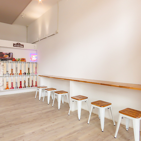 こだわりのコーヒーと韓国ラーメンが融合した、新感覚のスタイリッシュカフェ。白と木目を基調とした開放感あふれる店内には、ゆったり過ごせるカウンタースペースを完備。淹れたての香ばしいコーヒーはもちろん、セルフスタイルで楽しく作る本格韓国ラーメンもお楽しみいただけます。思い思いのひとときを。