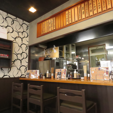 シックなモノトーンの壁紙が目を引く、モダンで清潔感あふれる店内。お一人様でも気兼ねなく過ごせるカウンター席と、ゆったりと会話を楽しめるテーブル席をご用意しております。ランチタイムの気軽なお食事はもちろん、夜は銘酒のボトルが並ぶ落ち着いた雰囲気の中、居酒屋メニューと共に贅沢な時間をお過ごしください。