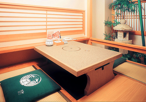 【個室 】4名様までご利用が可能です。 小窓からは日本庭園が見え、ゆっくりとした時間をお過ごしいただけます。