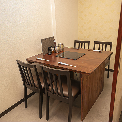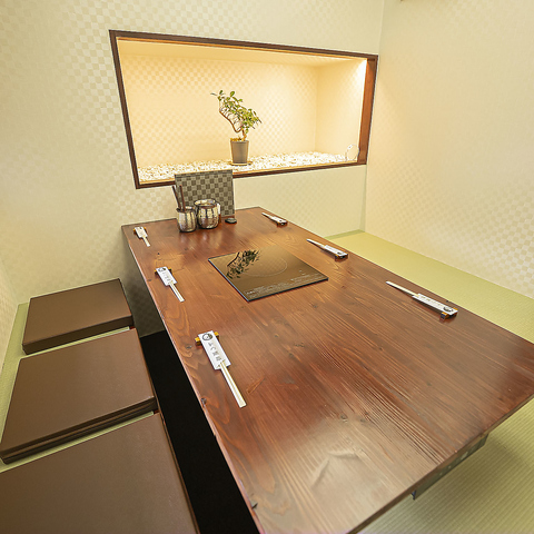 4名様用の個室テーブル席が4卓と、6名様に対応する掘りごたつ個室を1卓完備。程よい距離感と囲まれ感が心地よく、記念日やデート、ご家族での利用にも最適な一室です◎温かみある照明と上質なしつらえが居心地をさらに高めます。人目を気にしないプライベート空間で、大切な時間をゆったりと楽しむことができます♪