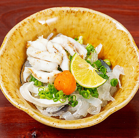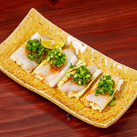 新鮮なふぐを使用し、オリーブオイル、塩にんにく、唐辛子を加えて旨味を引き立てる逸品。ピリッとした辛みとオイルのコクが絶妙に融合し、一口ごとに虜になる美味しさです。当日捌きたての鮮度と弾力感が特徴で、香りも楽しめます。お手頃な価格で上質な体験が可能。リピート必至の一皿をぜひじっくり堪能してください♪