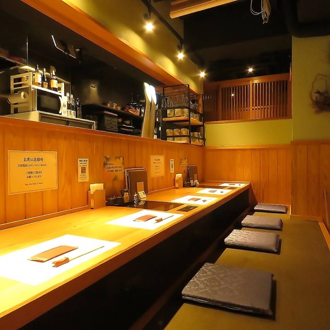 木目調の温かみあふれる店内には、全席ゆったり寛げる掘りごたつを完備!カップルシートのカウンター席も◎