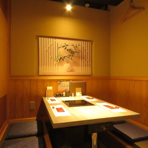 地下に広がる隠れ家空間。カウンターはお二人だけの特別なカップルシート。名古屋ではここでしか味わえない田原ポークのしゃぶしゃぶで、記憶に残るひとときを。