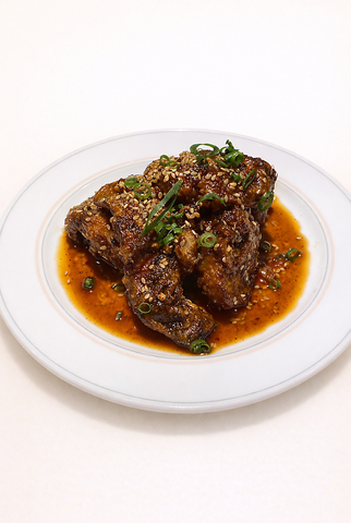 ジューシーなむね肉の唐揚げに、自家製よだれ鶏ソースを絡めた甘辛仕立て。濃厚な旨みで、お酒が止まらない一皿です。