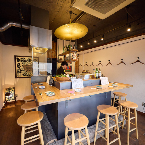 清潔感のあるモダンな和の空間が広がる当店。落ち着いた雰囲気の中で、目の前で焼き上げる料理の炭の香りが漂い、心地よいリラックス感を提供します。カウンターのみの配置で、アットホームな雰囲気が魅力。お一人様でも気軽に立ち寄れる場所として、多くのお客様に愛されています。