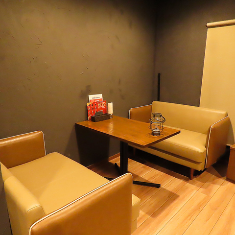 2Fは座り心地抜群のソファが並び、ランプが置かれた暗めのライティングで落ち着いた時間が流れます。モニターがあるため映像を流しながら語らうのも◎自然と会話が深まる癒しの空間設計。ご友人やご家族、大切な人との時間におすすめです♪