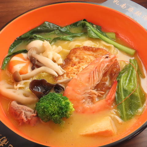 濃厚な牛骨スープの旨味とコクに、花椒の痺れる「麻」と唐辛子の刺激的な「辣」が重なる本格麻辣湯♪ 数十種類のスパイスと薬膳素材を丁寧に重ね、辛さの奥に深い旨味を感じる一杯に仕上げました。牛骨ベースが辛味をやさしく包み込み、最後まで飲み干したくなる味わいです◎