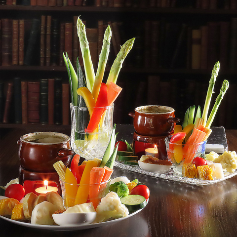 羽沢産の採れたて直送野菜を心ゆくまでお楽しみください♪人気1番と言っても過言ではないこの逸品。採れたて野菜をその日に調理しそのままご提供しております。見た目〇味〇栄養バランス〇いいとこだらけのバーニャカウダは税込み1000円~ご準備しております!