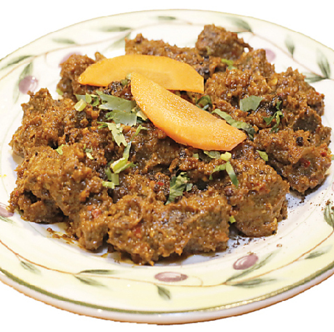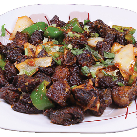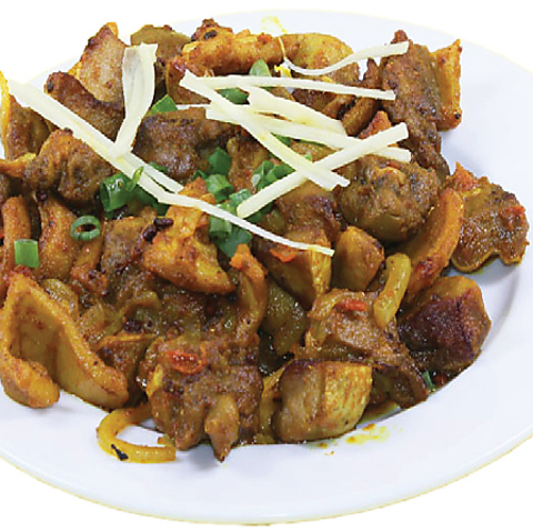 ネパール風スパイスで炒めたヤギの内臓料理。