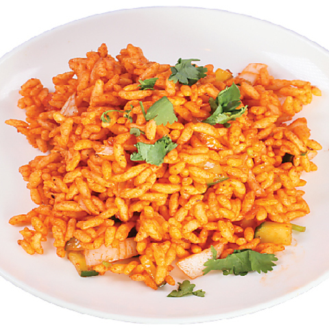 みじん切りした玉ねぎ、プジャ(ネパール風のポン菓子)などをスパイスで和えたおつまみ