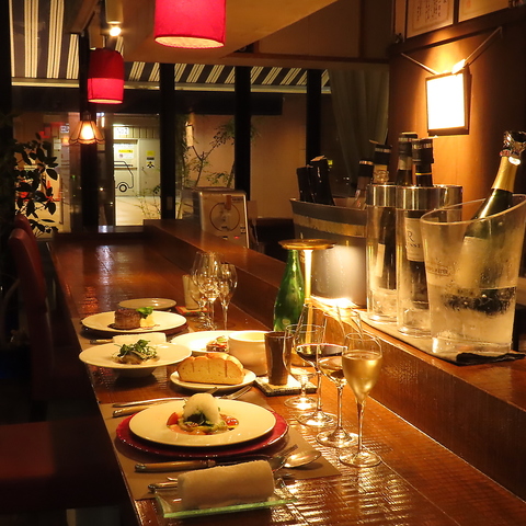 店内は落ち着いた木目調に統一されており、温もりを感じる空間に仕上げています。17時から21時半まではフレンチで華やかな時間を、その後はバータイムで柔らかな大人の雰囲気を堪能できます。最寄り駅からもアクセス便利で、仕事帰りの利用や記念日にも通いやすい立地条件も魅力的!居心地よい時間をお約束します!