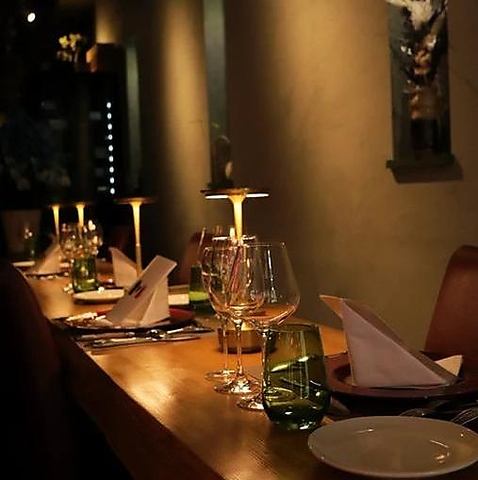 店内は落ち着いた木目調に統一されており、温もりを感じる空間に仕上げています。17時から21時半まではフレンチで華やかな時間を、その後はバータイムで柔らかな大人の雰囲気を堪能できます。最寄り駅からもアクセス便利で、仕事帰りの利用や記念日にも通いやすい立地条件も魅力的!居心地よい時間をお約束します!