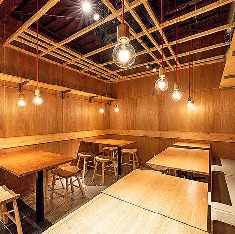 シンプルながらも木の温もりを感じられる、スタイリッシュなこだわりの空間。観光客の方やご友人とのお食事はもちろん、おひとり様も気兼ねなくご利用ください。