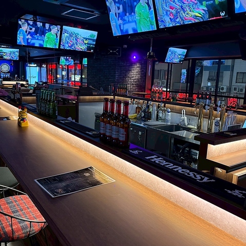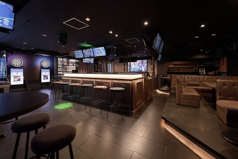 ダーツ、カラオケ、スポーツ観戦と、人気の遊びが1か所に集結。広々とした店内は、少人数の飲み会から大人数の結婚式二次会まで、幅広いシーンでご利用いただけます。お酒を片手に最新機種で盛り上がるもよし、大型モニターで熱く応援するもよし。みんなでワイワイ楽しめる、使い勝手抜群のアミューズメントバーです!
