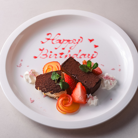お好きなメッセージを添えられる、特別感あふれるデザートプレート。誕生日や記念日、お祝いのシーンにぴったりで、大切な一日をより印象的に演出します。甘いひとときとともに、気持ちが伝わるサプライズをどうぞ。