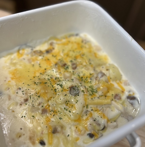 海老・いか・貝の旨みがぎゅっと詰まった熱々グラタン。とろ~りチーズとクリーミーソースが絡み合う、女性人気の一皿♪