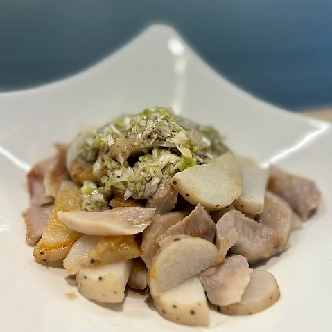 常連さんにも人気の手羽餃子。日によってメニューが変わるので当日のお楽しみ♪パリッと焼いた手羽先の中に餃子餡がぎっしり。ビールが止まらない。