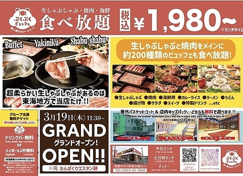 | 店名 | 生しゃぶしゃぶ・焼肉・海鮮食べ放題 ぷくぷくビュッフェ西尾店 |