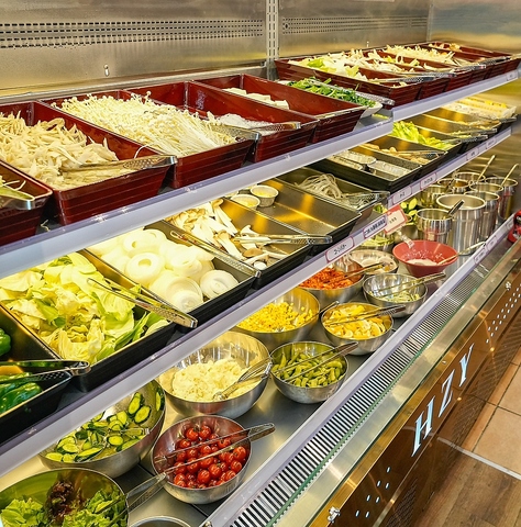 しゃぶしゃぶ・焼肉・海鮮・デザートまで楽しめる充実のラインナップ。豊富なメニューで世代を問わず満足いただけます。さらに駐車場やキッズパークも完備しているため、ご家族連れでも安心。食事も遊びも一度に楽しめる、まるでテーマパークのようなワクワク空間です。