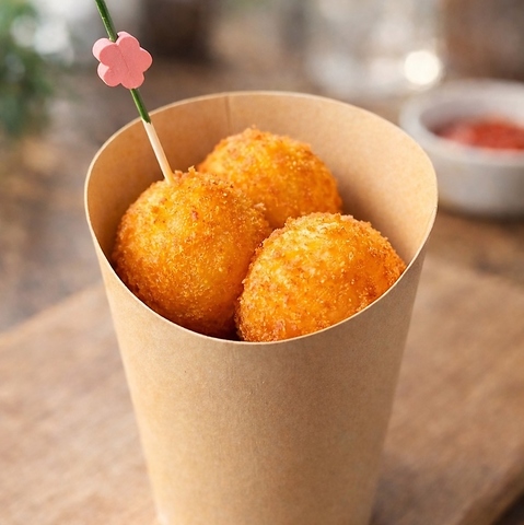 犬山城下町の散策にぴったりなテイクアウトメニューも充実!「さん太セット」は、本店でも愛されている「さつコロ(さつまいもとクリームチーズのコロッケ)」と、可愛いサイズのミニオムライスがセットになった一品です♪地元メーカーの無添加ソーセージを使用し、安心・安全な美味しさを追求しました。
