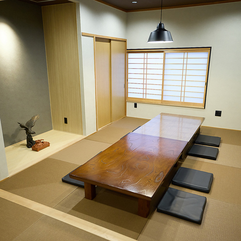 2階は、最大18名様までご利用いただける広々とした畳敷きの和空間。10名様から1週間前のご予約で完全貸切が可能です!小さなお子様連れのご親戚の集まりや、会社での歓送迎会など、プライベート感を重視したいシーンに最適。清潔感溢れる落ち着いた和モダンな空間で、周りに気兼ねなく美味しい料理とお酒を楽しめます。
