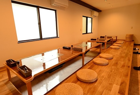 足を伸ばしてゆったりと寛げる掘りごたつ席は、お子様連れのご家族や友人同士の集まりに人気です◎自慢の県産和牛を囲みながら、リラックスした時間をお過ごしください。最大8名様までの小規模な宴会にも最適♪