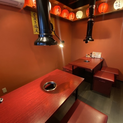【テーブル席】ゆったりとした2名様~4名様ようのテーブル席。友人や同僚との飲み会にぴったりです。団体貸切も可能となっておりますので忘新年会・歓送迎会などの宴会シーズンはお早めのご予約を!【焼肉/飲み放題/ハッピーアワー/女子会/食べ放題/会社宴会/】