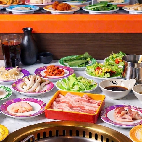 平日はメインを選べるお得なランチ定食をご用意しております♪野菜やご飯、麺類、キムチなどは全てお替り自由◎回転レーンから好きな具材を選んで、自分流にカスタマイズできるのが魅力です♪お財布に優しい価格ながら、ボリュームもお好みも自由自在◎お腹いっぱい食べたい日のパワーチャージに、賑やかなランチタイムをお過ごしください♪