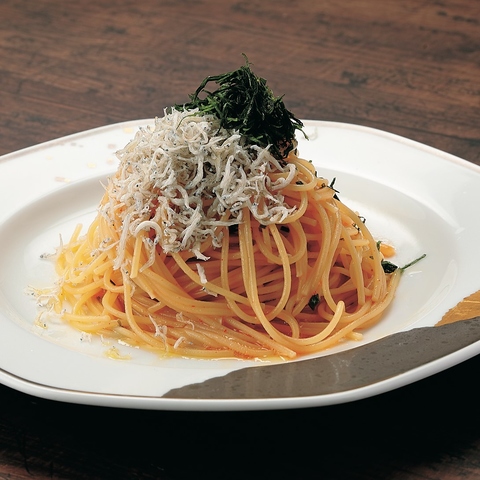 当店人気の一皿でたっぷりのしらすにさわやかな大葉を添えた、シンプルでやさしい味わい。食欲をそそる和風仕立ての一皿です。青味のある香りと軽快な酸味をもつ白ワインが大葉の清涼感と絶妙に調和し、しらすの旨みを引き立てます。和と洋が心地よく響き合う、上品で軽やかな味わいをお楽しみくださいませ。