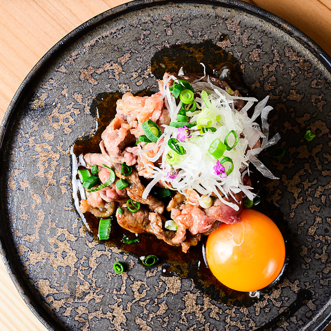 濃厚な「とよんち玉子」を絡めていただく「一皿のすき焼き」。お酒が止まらなくなるラインナップ。