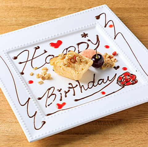 大切な記念日に。メッセージを添えた特製プレートを用意します。