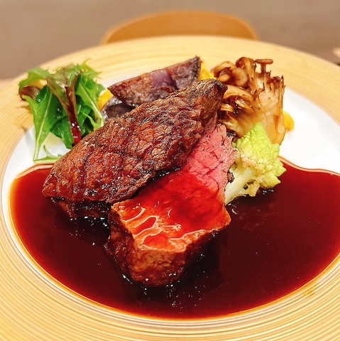 黒毛和牛やアワビなど、その日の最高級素材を贅沢に盛り込んだ全9品の特別プラン。シェフの感性が光る至高の一皿を、心ゆくまで堪能できます。特別な記念日や大切な方へのおもてなしに相応しい、贅沢なコースです。※写真はイメージです。