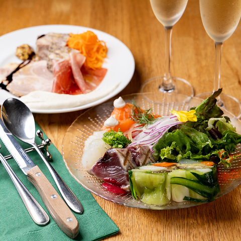 こだわり食材を活かした本格フレンチを、お酒と共に心ゆくまで。旬の京野菜や鮮魚を使用したフランス家庭料理に、多彩なドリンクが選べる「飲み放題付きプラン」をご用意しました。お料理のソースとお酒が響き合う、極上のペアリングをカジュアルに楽しめます。会食や飲み会など、シーンに合わせてぜひご活用ください。