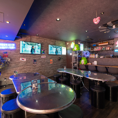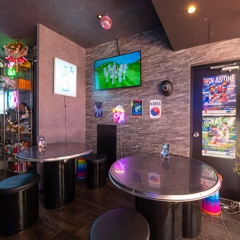 ネオンが輝く韓国居酒屋で、まるでソウル気分◎店内はどこを撮っても映える韓国風インテリアで、写真好きにはたまらない空間!チーズたっぷりの韓国グルメや、カラフルなドリンクでテーブルの上まで可愛く!ゆったり過ごせるから女子会にもぴったり◎