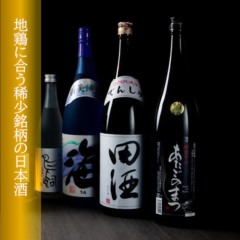地鶏に合わせた稀少銘柄の日本酒を5種取り揃えています。種類豊富なお酒もラインナップ。
