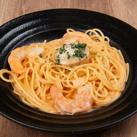 不動の人気メニュー!海老と帆立の海老風味クリームソース