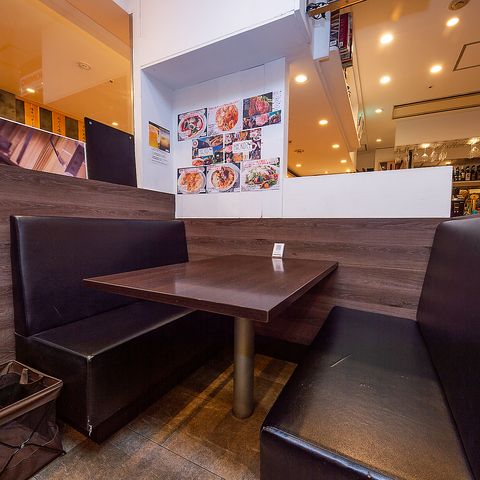 4名掛けのテーブル席は1席、ソファーのBOX席となっています。ゆったりと過ごしたいお客様におすすめのお席となっています。普段使いのお食事だけでなく、親しい友人や同僚との飲み会、女子会にピッタリと空間となっています!ぜひ、様々な用途で当店をご利用ください♪
