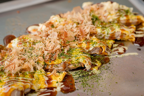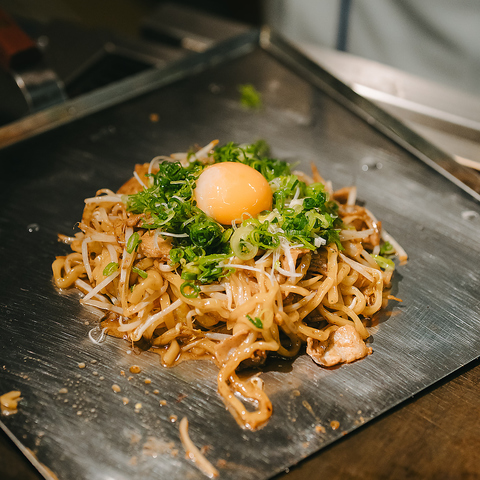 大阪名物の焼きそばやお好み焼きにも、店主のこだわりが光ります!お好み焼きは小麦粉を使わず、米粉と山芋を主役にすることで、ふわふわとろけるような軽い食感を実現しました。また、特注麺を使用した焼きそばは「ニンニク醤油」か「甘味噌」からお好みの味付けを選択可能。素材の良さを活かした本格的な浪速の味を心ゆくまでご堪能ください♪
