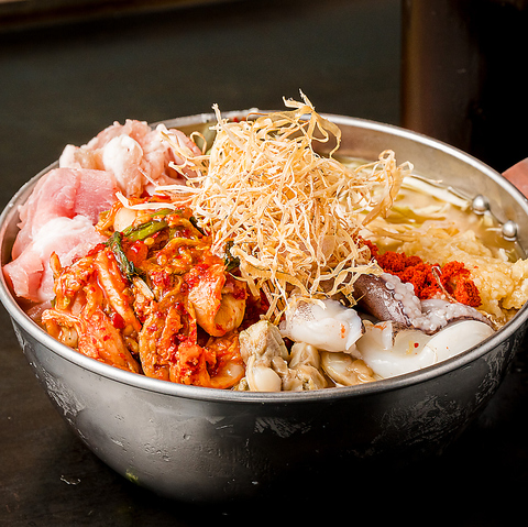 エビ・カキ・ゲソ・豚・牛すじ ※ゲソ抜きは-330円(税込)/※エビ抜きは-440円(税込)/※カキ抜きは-440円(税込)/ 【トッピング】玉子:165円(税込)/キムチ:165円(税込)/もち:220円(税込)/ネギ:220円(税込)/納豆:220円(税込)/チーズ:330円(税込)/そば:330円(税込)