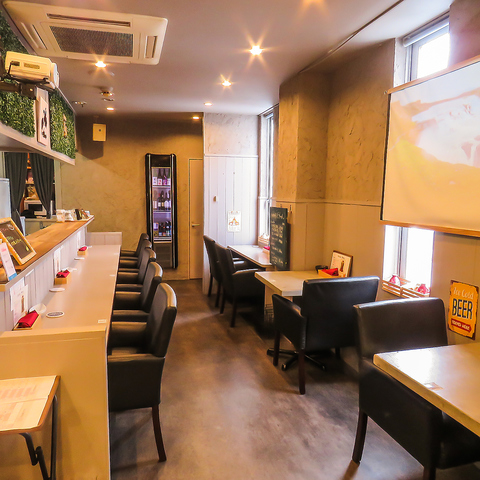 ゆったりとお食事とお酒をお楽しみいただけるテーブル席。落ち着いた空間の中で美味しいお料理と会話をゆっくり楽します。デートにもおすすめです。