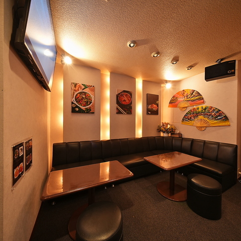 一歩足を踏み入れると、そこには本場タイの情緒漂う落ち着いた大人の空間が広がります。壁にはタイの風景画や色鮮やかな扇が飾られ、異国情緒あふれる雰囲気を演出♪高級感のある大理石調のカウンター席や、ゆったりと体を預けられる黒のソファー席など、シーンに合わせてお選びいただけます。ボトルキープも承っております