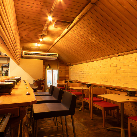 お一人様でもフラッとお気軽にご来店頂ける様、カウンターのお席を7席ご用意しております。お隣との距離も程よく取っておりますので、ごゆっくりとくつろいでお過ごしいただけます♪誰の目を気にすることなくメニューをみながら今日の気分のお料理とお飲み物をじっくりと選ぶという至福の時間を心ゆくまでお楽しみ下さい!