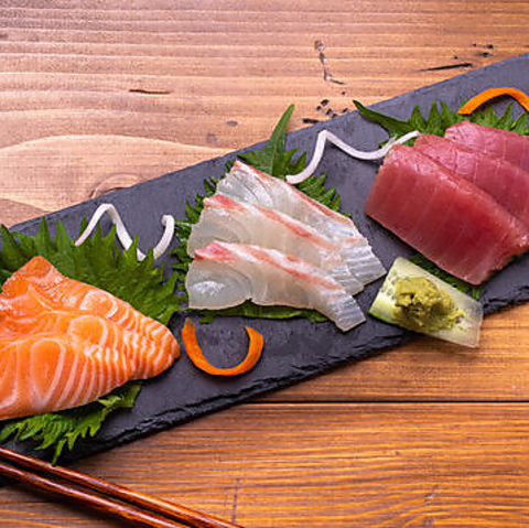 豊洲市場から毎朝直送される新鮮な鮮魚を、旨みを最も引き立てる状態で提供する刺身三種盛り。季節ごとに変わる旬の魚介を厳選し、鮮度ならではの甘み・脂のり・食感を存分にお楽しみいただけます。料理長が自信をもっておすすめする、海の恵みを凝縮した当店自慢の逸品です。