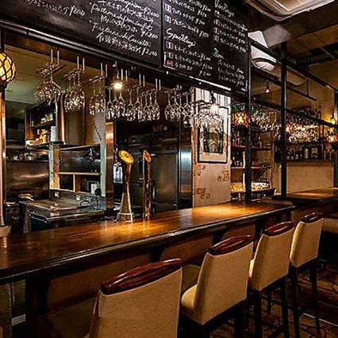 御徒町駅徒歩2分、ビルの地下にお店を構える当店は、大人の隠れ家的なカジュアルビストロです。お洒落なボトルが並ぶオープンなカウンター席は、お一人様でのご利用も大歓迎しております。お仕事帰りの一杯や、ゆっくりした場を楽しみながら過ごす夜など、どんなシーンでも温かくお迎えする落ち着いた空気感が魅力です★