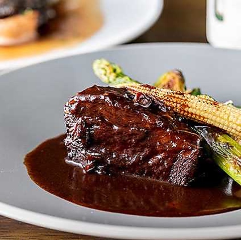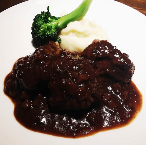 【売れ筋】赤ワインとフォンドボーでじっくり5時間煮込んだ逸品。コクのある赤ワインソースはバケットとの相性抜群。