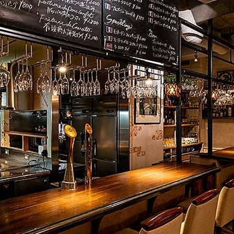 オープンキッチンに面したライブ感たっぷりのカウンター席です♪目の前で調理風景を眺めながらお料理をお楽しみいただけます。デート利用や食事会だけでなく、お一人様も気軽に過ごせるお席です◎会話を楽しんだり、お酒をゆっくり嗜んだりと、自由なスタイルでビストロの醍醐味を満喫してください。
